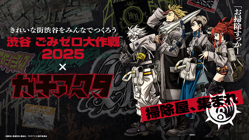 - 2025.10.14TVアニメ『ガチアクタ』 第2クール始動!物語は掃除屋VS荒らし屋のガチバトルへ! 「掃除屋、集まれ」 『ガチアクタ』でハロウィンの渋谷のごみをゼロに! 渋谷ごみゼロ大作戦2025コラボレーション決定‼ オリジナルごみ袋配布決定!